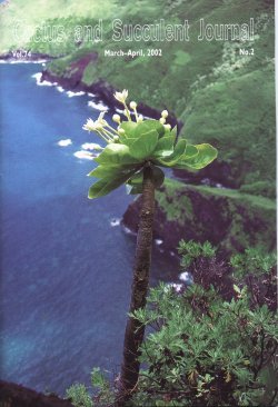 | Cover illustration: Brighamias are lobelia relatives and about the only succulents native to Hawai'i, as is discussed in this issue by Dylan Hannon and Steve Perlman. Of the two species, B.insignis is sometimes grown, but the subject of our cover B.rockii is rarely seen either in collections or in habitat. Here it is, growing on precipitous cliffs above Haupu Bay on the island of Moloka'i. Mr Perlman is the intrepid photographer. |
