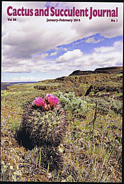 | On the cover: Pediococtus nigrispinus grows in profusion in certain places in eastern Washington state, and Dixie Dringman, ably assisted by her dog Yutah, knows where some of the finest specimens are, as her picture here shows. This particular individual is growing on basalt, exposed formations of which can be seen in the background. |
