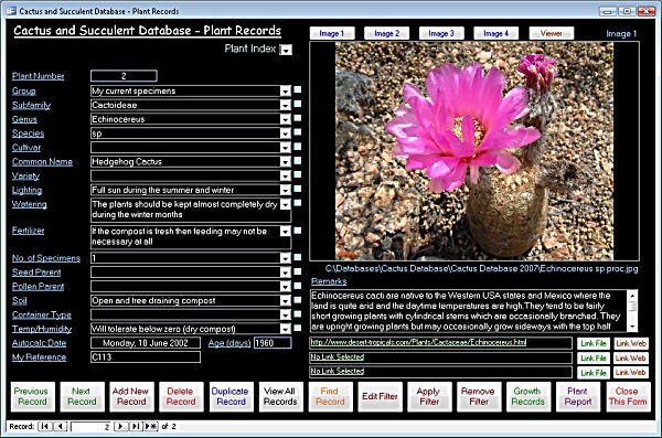 Cactus database on CDROM